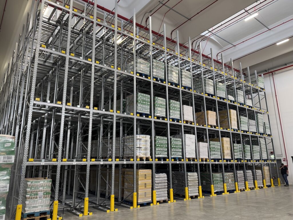 - – Scaffalature in contropendenza LIFO con n. 4 pallet in profondità per le materie prime e per alcune tipologie di prodotti finiti